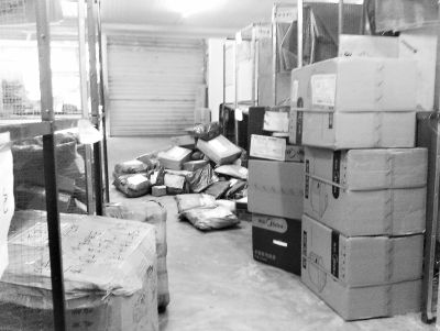 速遞包裹被隨意堆積在分揀區內 記者劉智宇 攝
