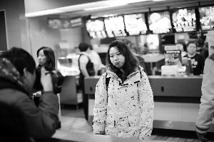 昨天最寒冷的位子要數麥當勞門前商場回廊下的露天座位。由於餐廳內部人滿為患,於是這十余個原本在夏天為人們歇腳納涼的座位也被前來找回憶的人們佔據,人們三三兩兩在寒風中坐著聊天拍照。