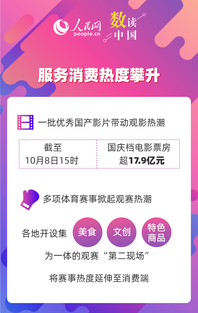今年國慶假期與中秋節疊加,形成8天的長假。期間,各地區各部門通過政策支持和創新服務激發消費潛力,全國消費市場供給豐富、運行平穩,居民消費需求集中釋放,市場活力不斷增強。一組數據來看。