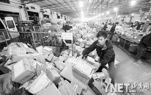 昨晚11點,中通速遞工作人員正在忙著派件分揀