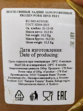 湖南省浏阳市市场监管部门查处的涉案冷冻猪脚及标签。