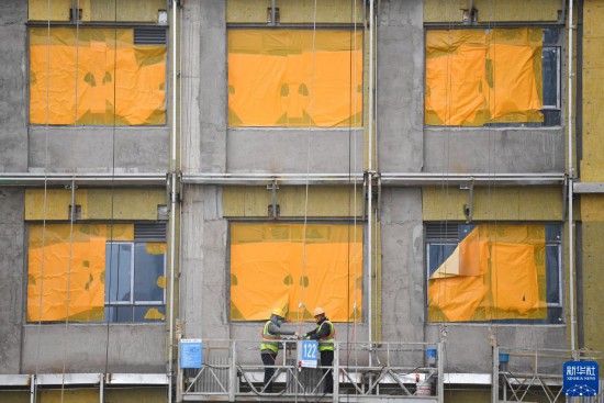 2月4日,中建三局西北公司工人在西安市第一实验学校建设项目现场施工。新华社记者 张博文 摄