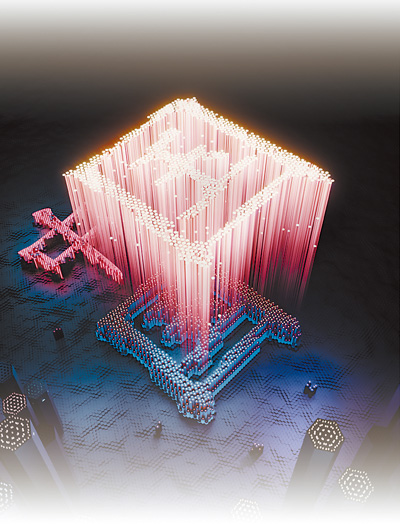 “实现原子级特征尺度与可重构光频相控阵的纳米激光器”概念图。 |