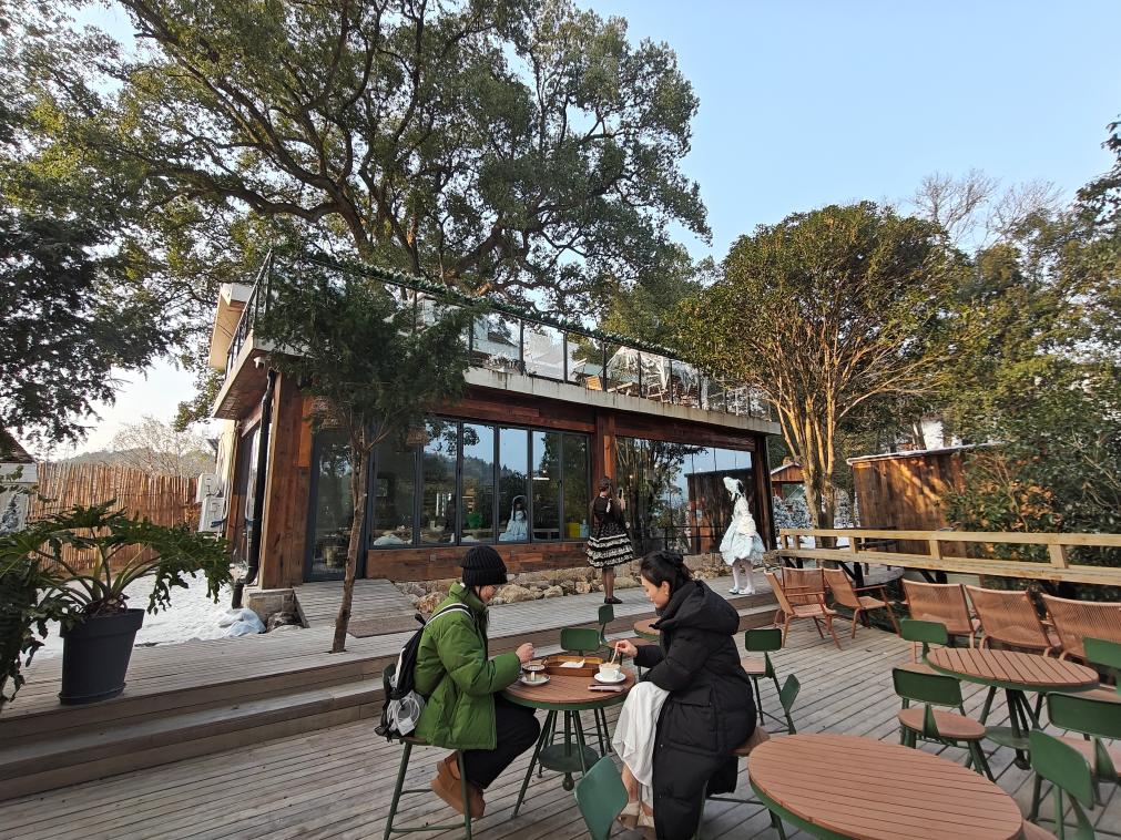 在江西省宜春市袁州区南庙镇梅花村,古樟树下年味与咖啡醇香交织。“00后”店主刘静怡忙着迎接四方来客。两年前,她以外地游客的身份到访,被这里古树环绕、老屋错落的风貌和便捷的交通吸引,随后在古樟旁建起木屋咖啡店,成为梅花村的“新村民”。